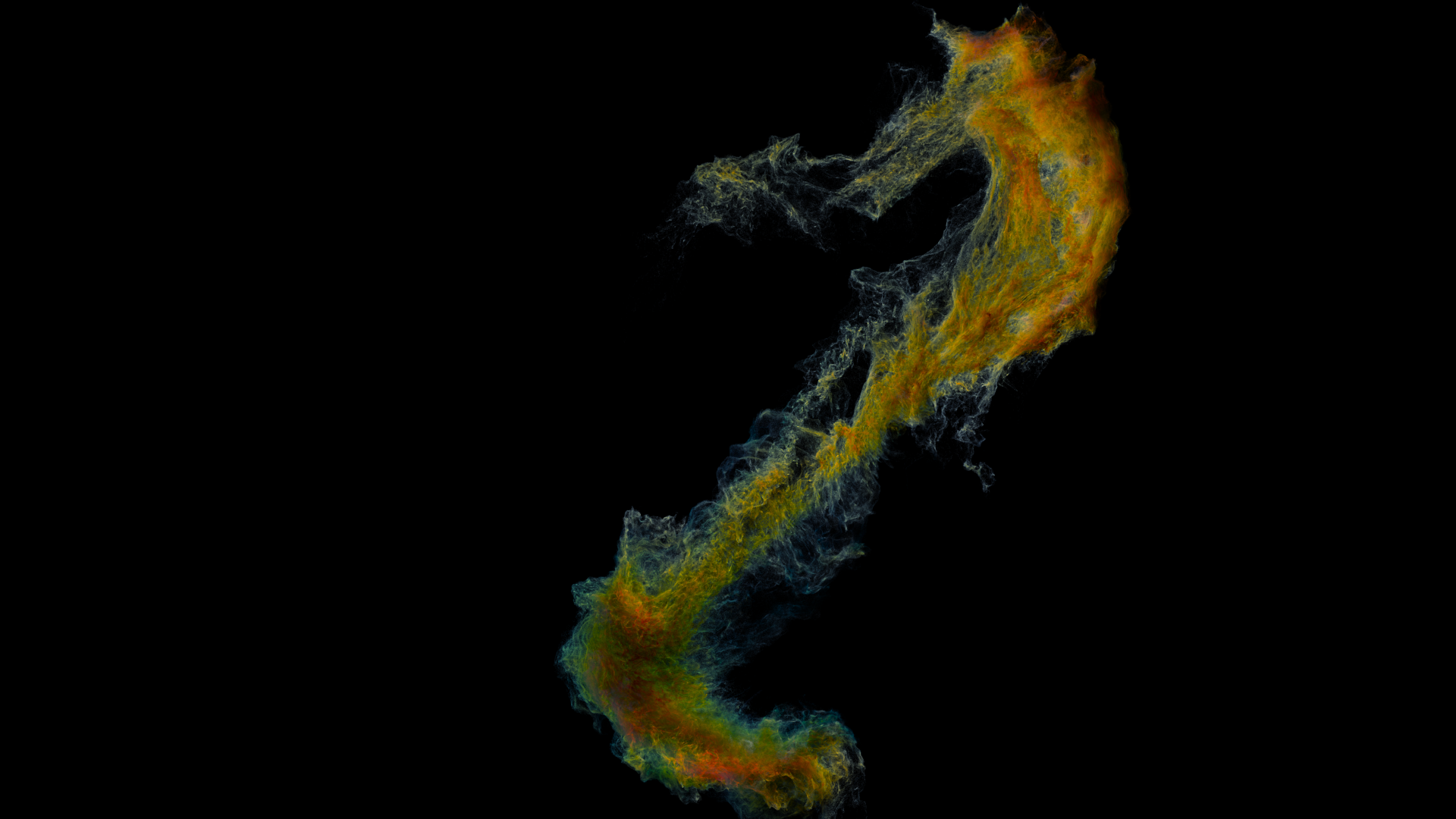 So this is my second approach, no particles just volumes, distorted with a lot of stacked noise.